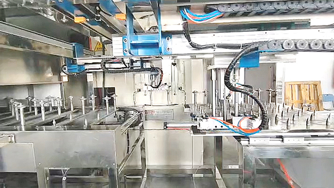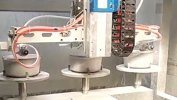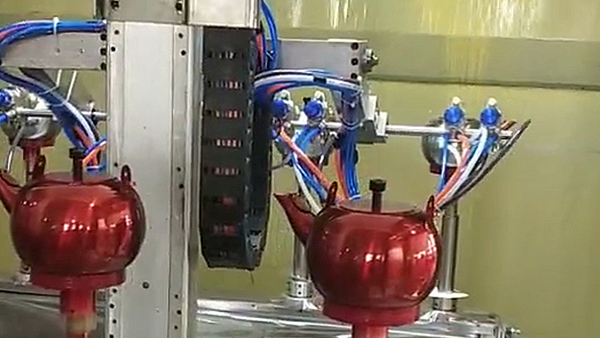 利用8轴喷漆技术,使五金产品在自动喷漆中完成整个喷涂过程。喷枪确保涂料均匀喷涂在零件上,同时实现喷漆与干燥过程的同步进行,操作简便,无需重复喷涂和干燥。此外,采用专利产品8轴喷漆机,可以做到不同产品AB盘切换,同时满足无色差要求。 对于刀具、铝杯、油桶等单一量大的产品,也有对应的地轨线形式做法, 根据产品工艺不同,线体长短可以配套定制,可定制自动上下料辅助,使整个喷涂工艺流程中,全自动化生产,减少人工上下件等产生不良品的风险